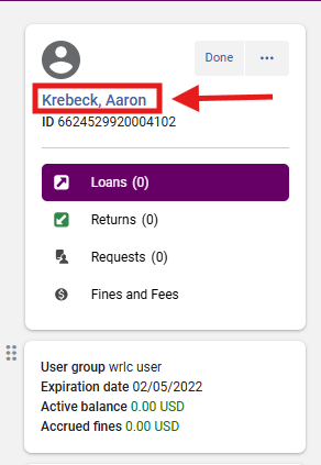 2. Click on the Patron's Name to open the User Details side panel