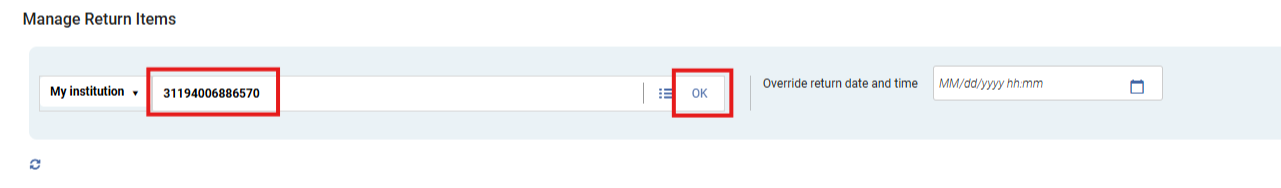 Circulation Desk staff may occasionally encounter physical materials with missing, damaged, or illegible barcodes during check-in or check-out. Manual lookup ensures continuity of circulation service while maintaining accurate fulfillment statistics. It also prevents delays or incomplete transactions that can disrupt hold queues and overdue calculations.