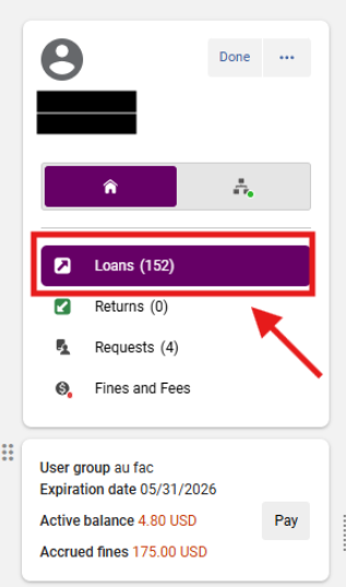 Note: Some items may not appear under <This Session>. Always verify using the full Loan list.