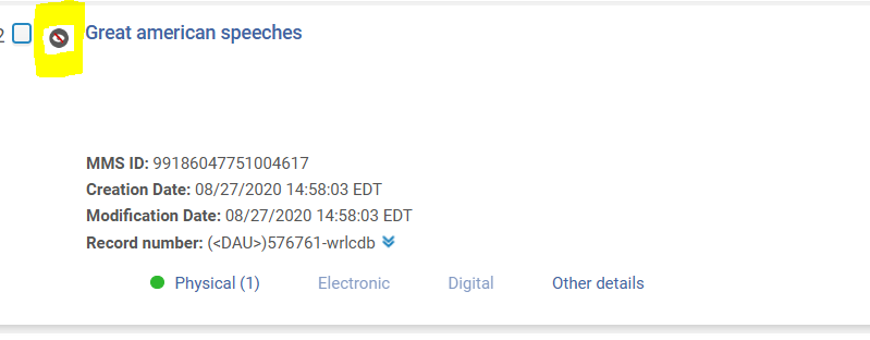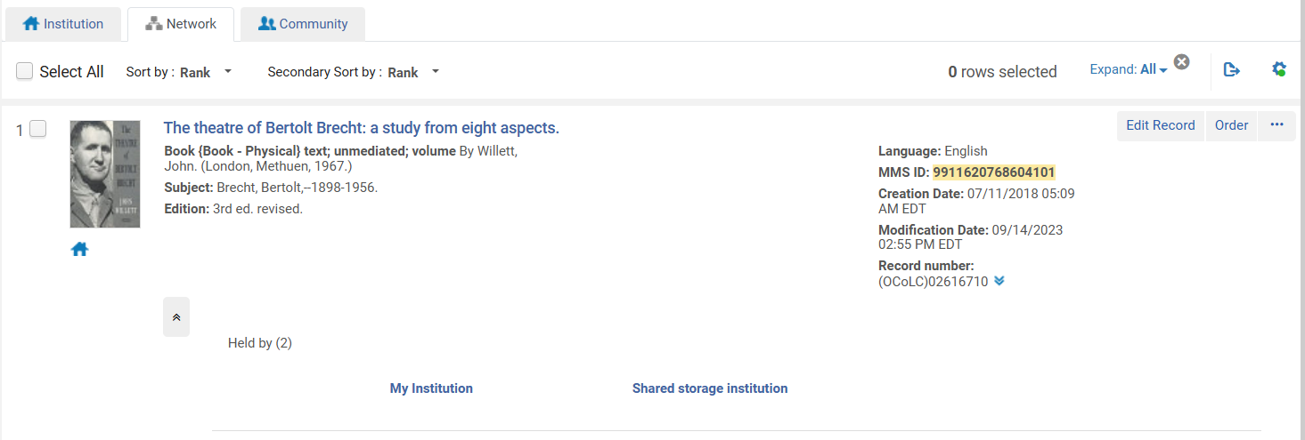 If the owning Institution's item record is attached to a Network Zone bibliographic record, the SCF copy of the item record will also be attached to the same NZ bib record. The SCF holding and item records are suppressed from discovery in Primo.